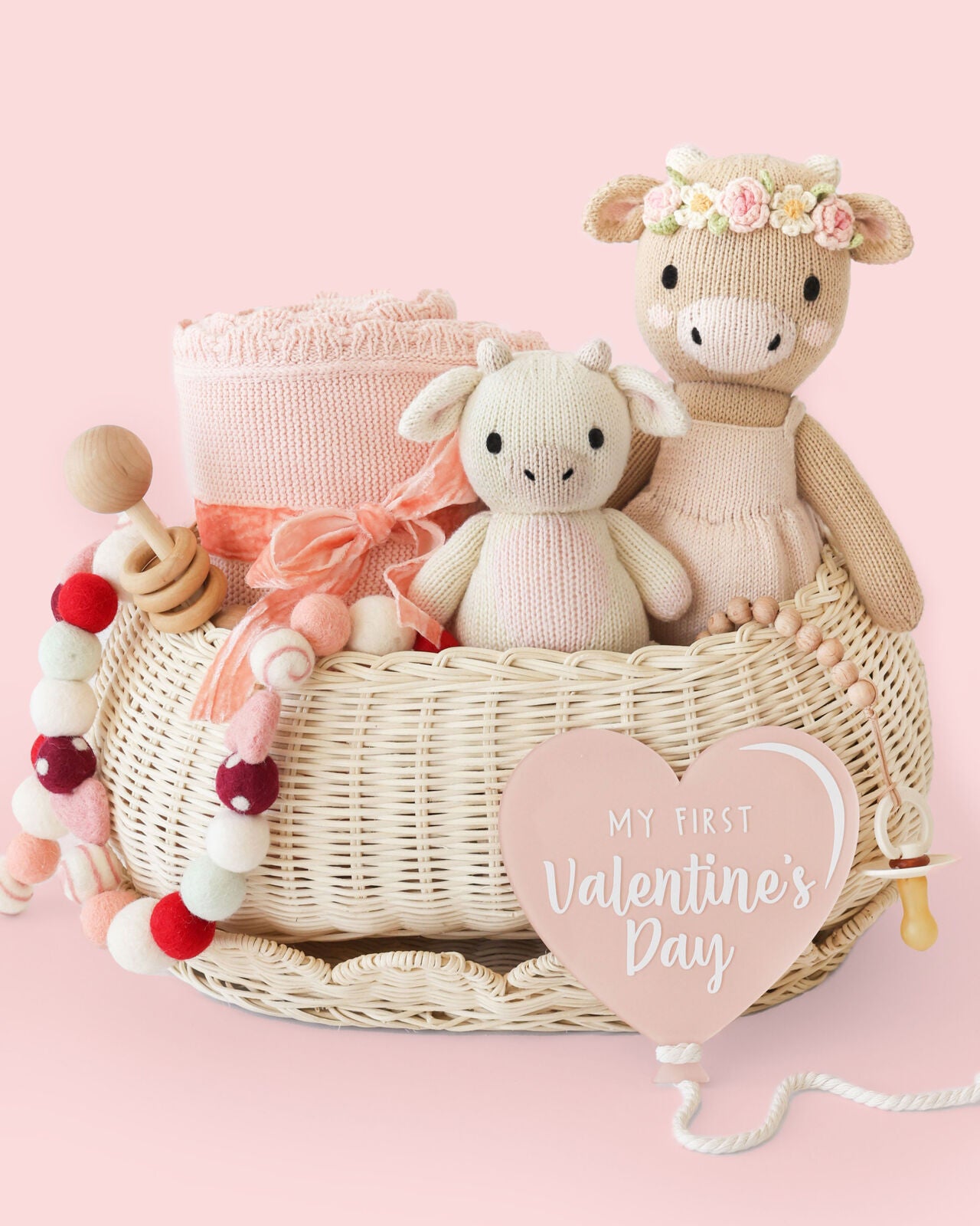 In soft cream and strawberry hues, this charming bundle of Amelia the Cow and Baby Cow is perfect for any love basket. Amelia’s comforting presence and Baby Cow’s adorable strawberry milk-colored belly are sure to bring endless joy. This thoughtful gift helps provide 15 meals to children in need.
