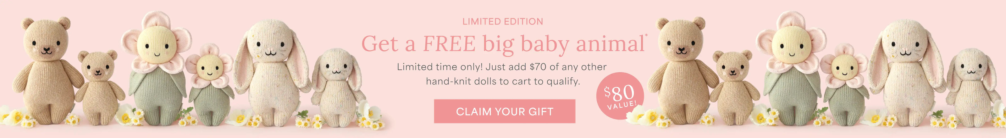 Beautifully hand-knit, luxuriously soft organic cotton loveys that feed children.