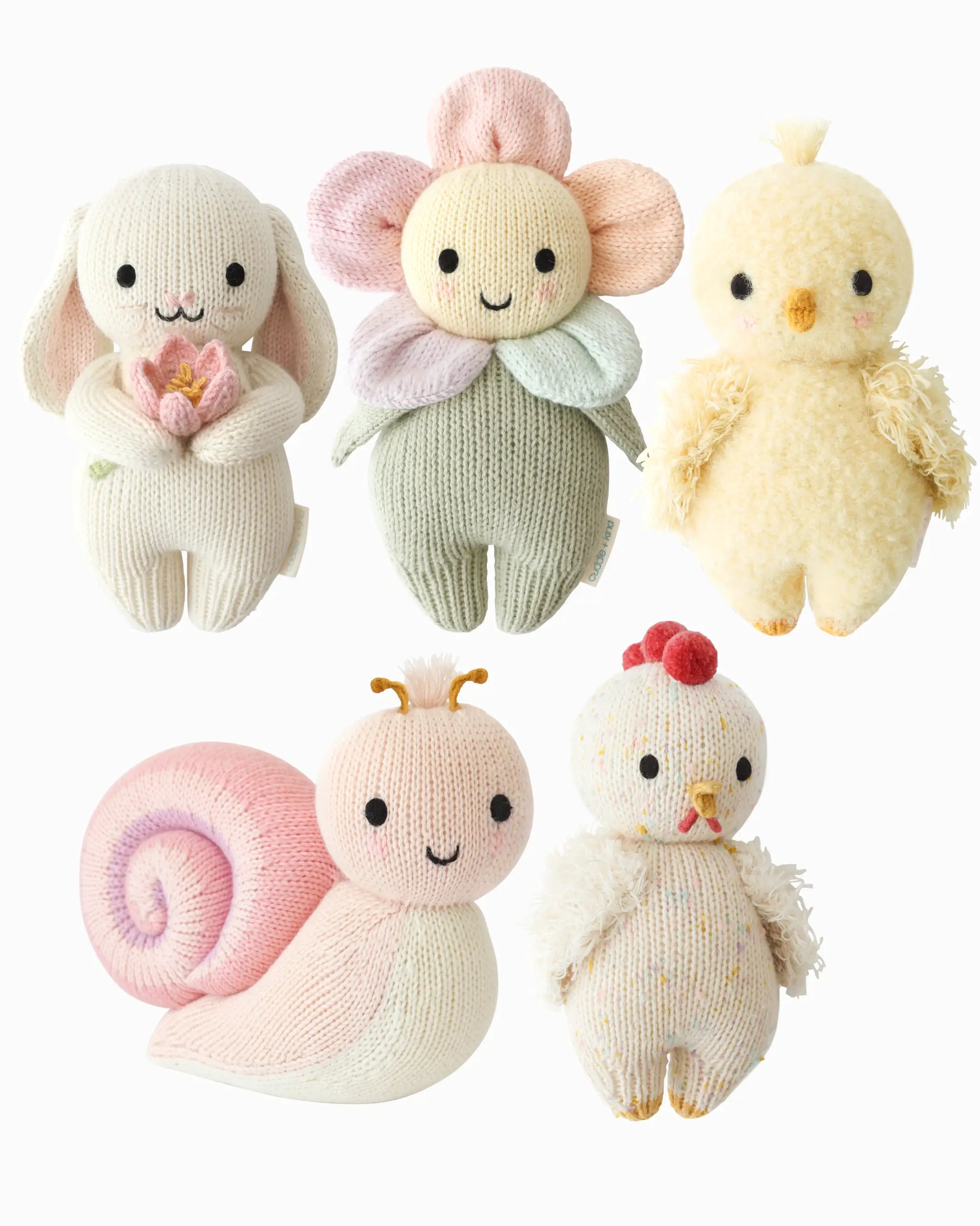 Absolutely adorable, oh so collectible and ready to gift! Start or grow your little one's collection with the Best of Spring Collection. At 7" just tall, each heirloom-quality baby animal is lovingly handcrafted from natural Peruvian cotton yarn, making them the softest, most lovable companions you could imagine. And they come perfectly packaged in this beautiful Limited Edition Garden Cottage gift box.